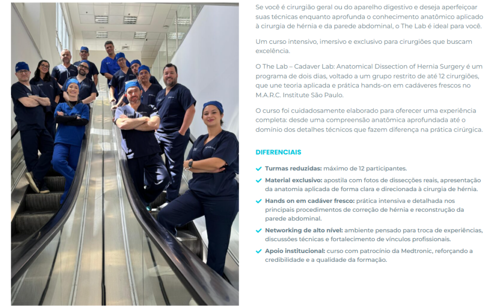 A compreensão teórica da imagem é o alicerce para a execução cirúrgica de excelência. O The Lab permite ao cirurgião compreender profundamente os aspectos anatômicos por trás das técnicas complexas de reconstrução da parede abdominal.
